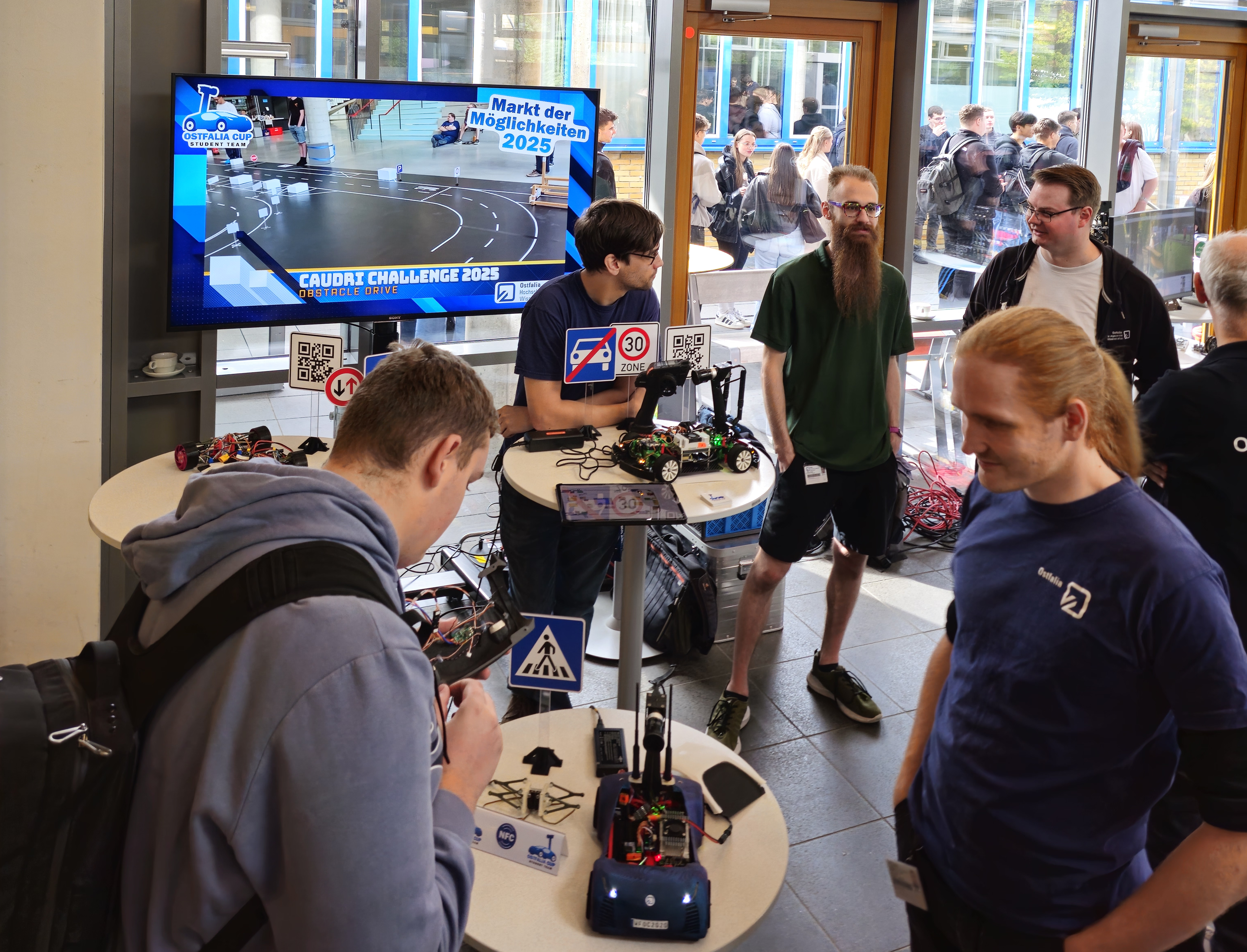 Wir begrüßen alle neuen Studierenden aller Fakultäten zum Wintersemester 2025/26. In einem bunten Rahmenprogramm sind auch wir mit einem Stand am Hauptgebäude am Standort Wolfenbüttel auf der Aktionsmeile (auch als Markt der Möglichkeiten bekannt) im Glasgang bei der Cafeteria am Montag, 22.09.2025 von 10.00 Uhr - 13.00 Uhr dabei! Ihr könnt hautnah unseren aktuellen Fahrzeuge erleben und auch gerne "unter die Haube" schauen. Wir zeigen Euch auch unseren Prototypen der neuen Plattform. Ihr könnt mit uns gerne über alles Mögliche sprechen. Entweder über die Fahrzeuge oder die AG, aber auch über das Studium an der Ostfalia. Weitere Infos zum Programm der Erstibegrüßung findet Ihr auf der offiziellen Webseite. Wir freuen uns auf Euch!